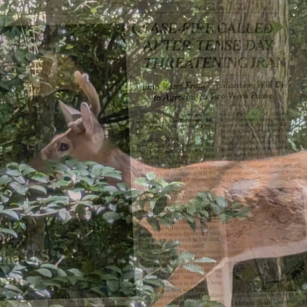 a doe clacks off the asphalt in her own time.